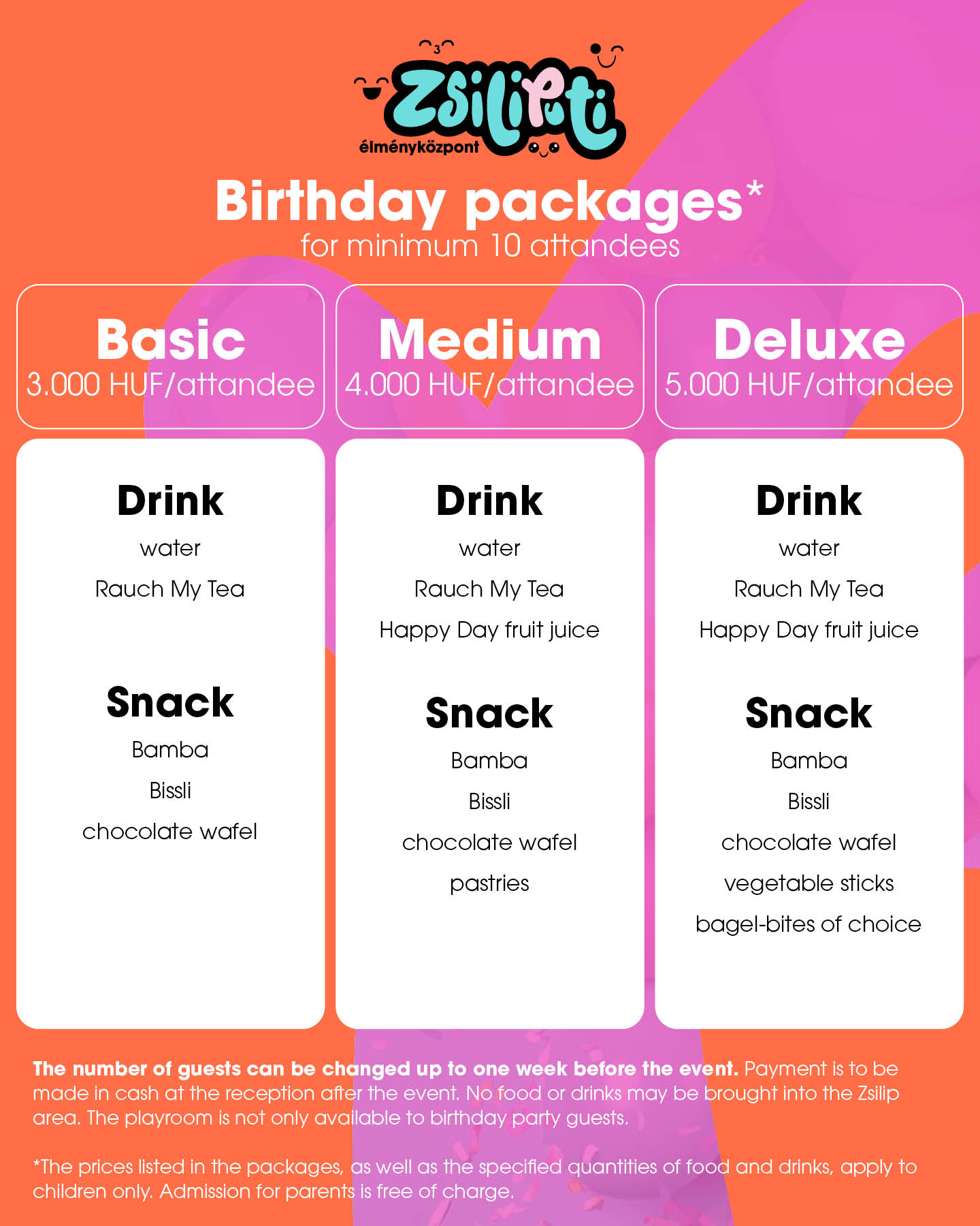 Basic (snackek és üdítő): 3000 Ft/gyerek